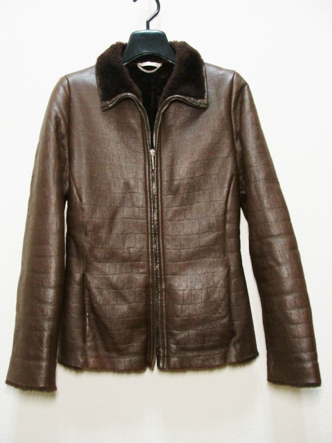 - MaxMara マックスマーラ ◇ 羊 皮 革 シープ ムートン ファー レザー クロコ 型押 柄 ジップ ブルゾン ジャケット