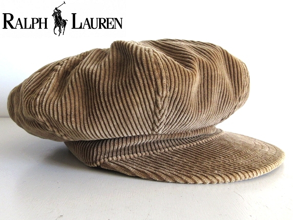 > 美品 希少 90sビンテージ RALPH LAUREN ラルフローレン 太畝コーデュロイ ビッグ キャスケット 帽子 M ブラウン RRL 第一昭和 国内正規品