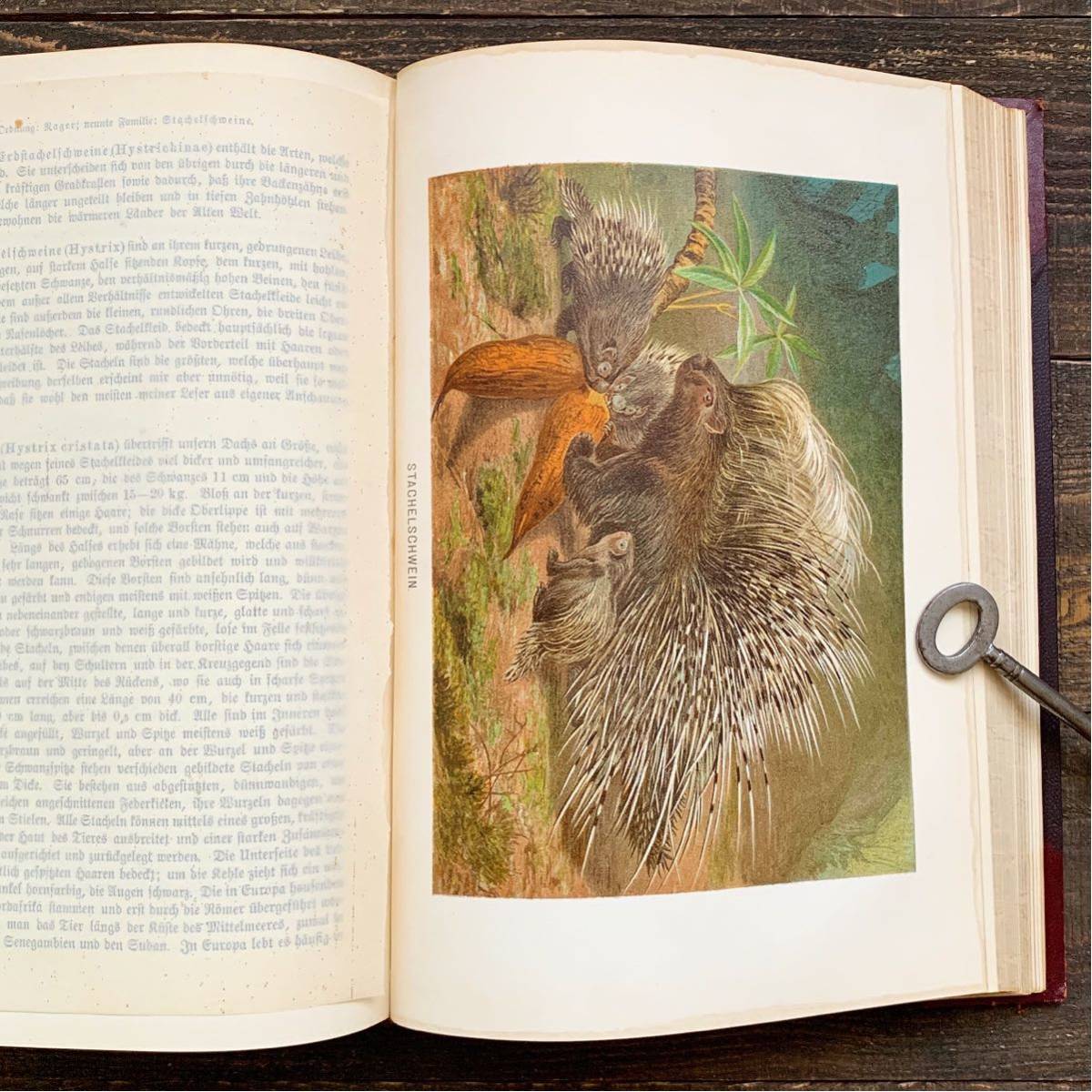 > [1900年]ドイツの古い哺乳類の図鑑(Saugetiere 2)/アンティーク ヴィンテージ リトグラフ 猿 コウモリ ライオン 虎 ゴリラ 雰囲気◎/