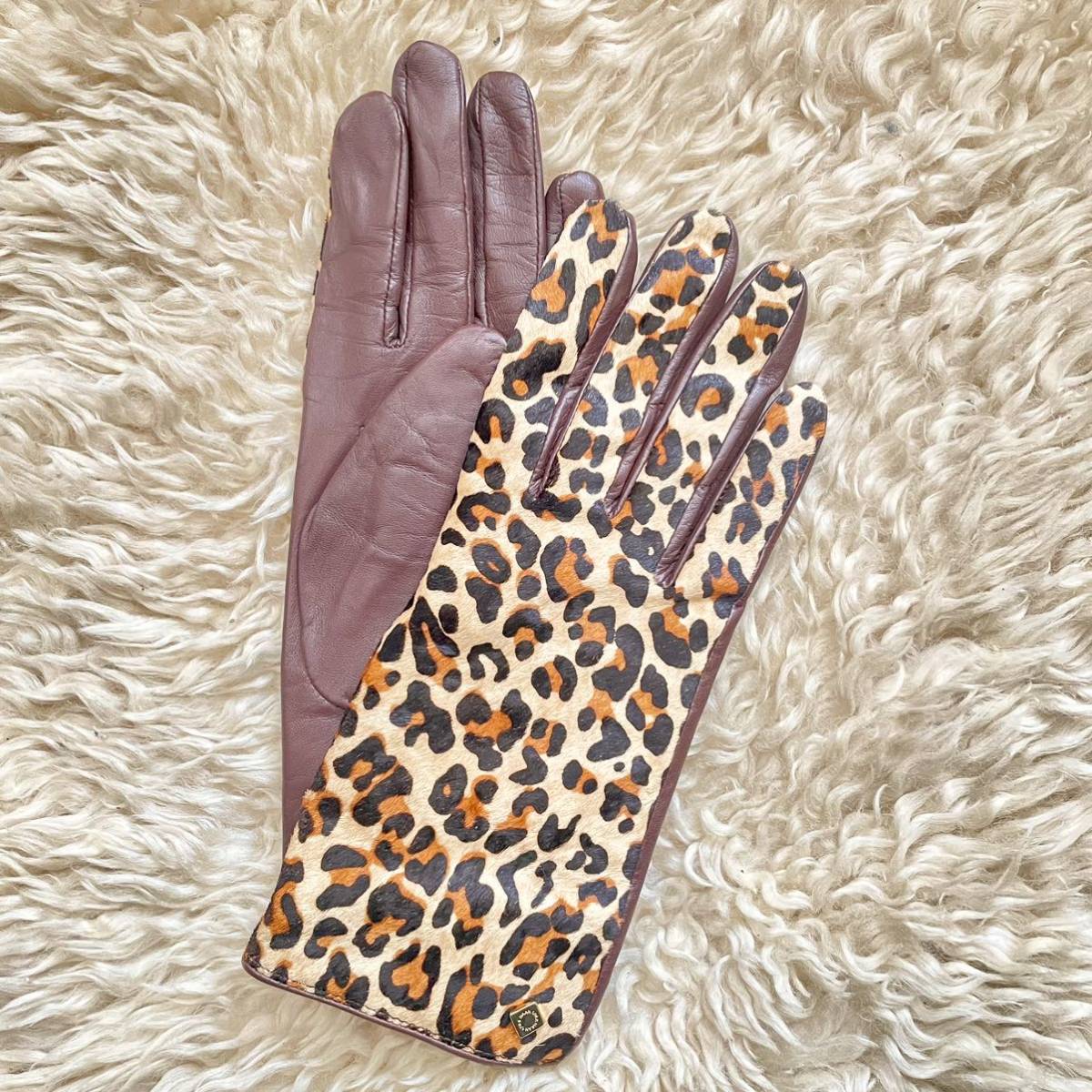 - 送料無料 コールハーン ハラコ手袋 レオパード レザーグローブ 羊革 ウール 手袋 ハラコ 5本指