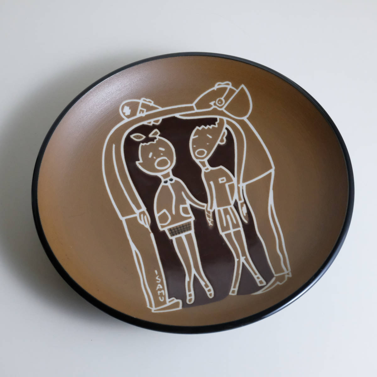 - 陶器 飾り皿 ISAMU 大皿 民芸 絵皿 置物 オブジェ インテリア 古道具