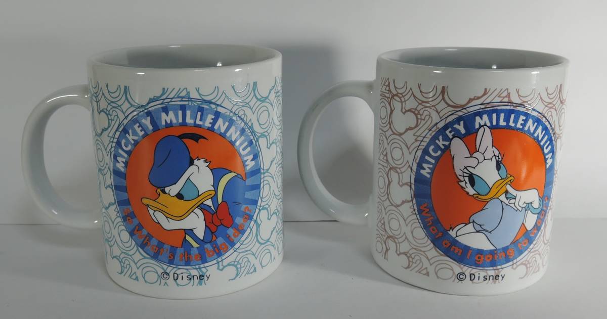 - ☆W02■ミッキー ミレミアム 2000 ドナルドダック/デイジーダック ペアマグカップ 陶器製■カップハンガー/スタンド付き 未使用