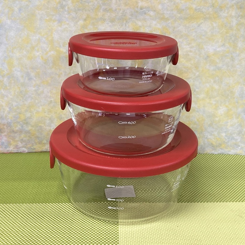 - 【即決】送料無料!日本製 レッド SYTN-2518-R HARIO(ハリオ) 耐熱ガラス製 保存容器 3個セット