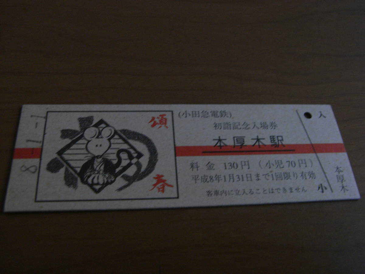 - 小田急電鉄 本厚木駅 初詣記念入場券 130円 平成8年1月1日 ねずみ