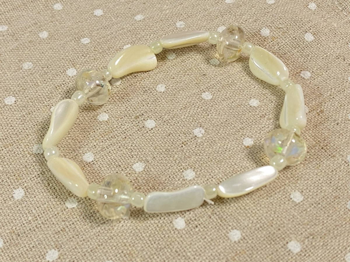 - ◎細石入り樹脂ビーズと高瀬貝のブレスレット17.5cm(J09)