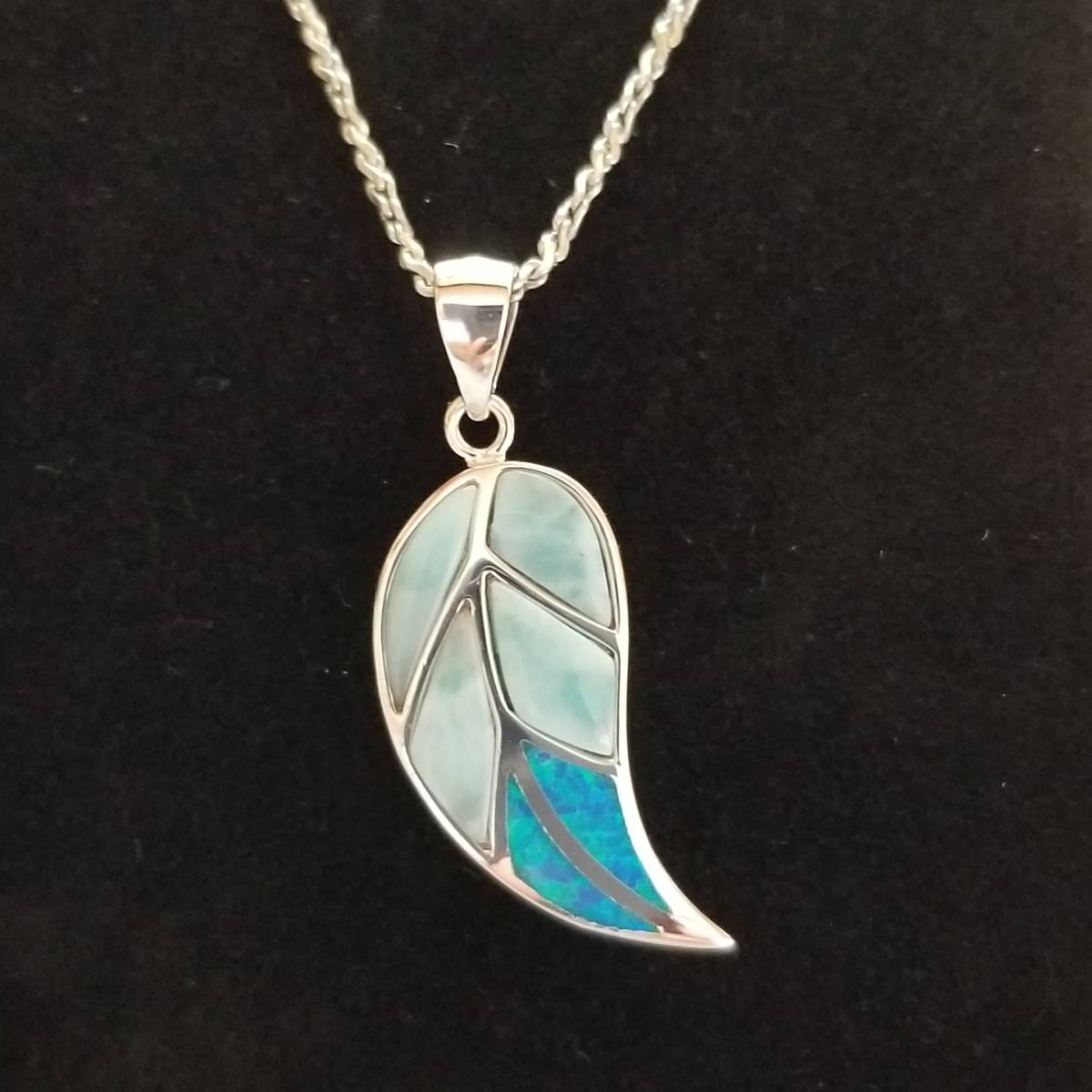 - ラリマー リーフ型 シルバー925 ペンダントトップ