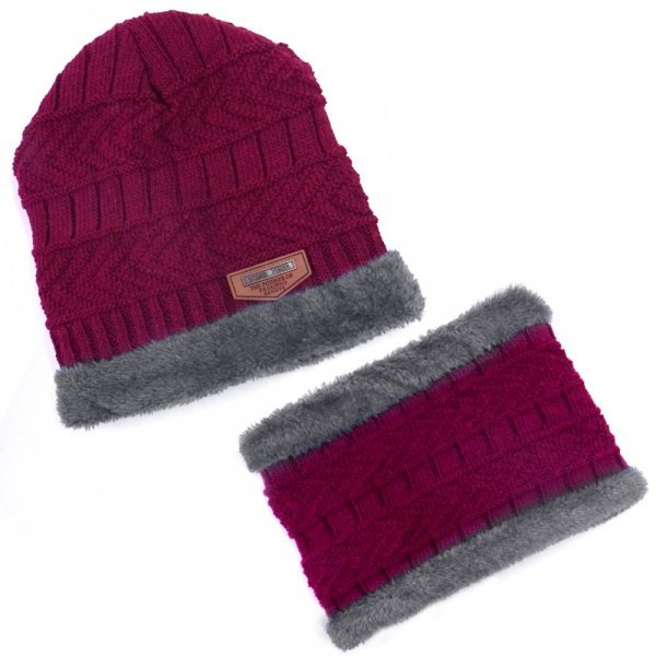 - ニット帽 レディース 帽子 ネックウォーマー 2点セット 裏起毛 男女兼用 防寒 アウトドア 冬用 レッド