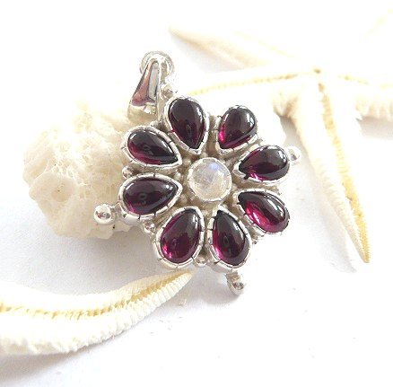 - ★奉仕品★ 即決 SV925 天然石 ガーネット お花型 ペンダント A5