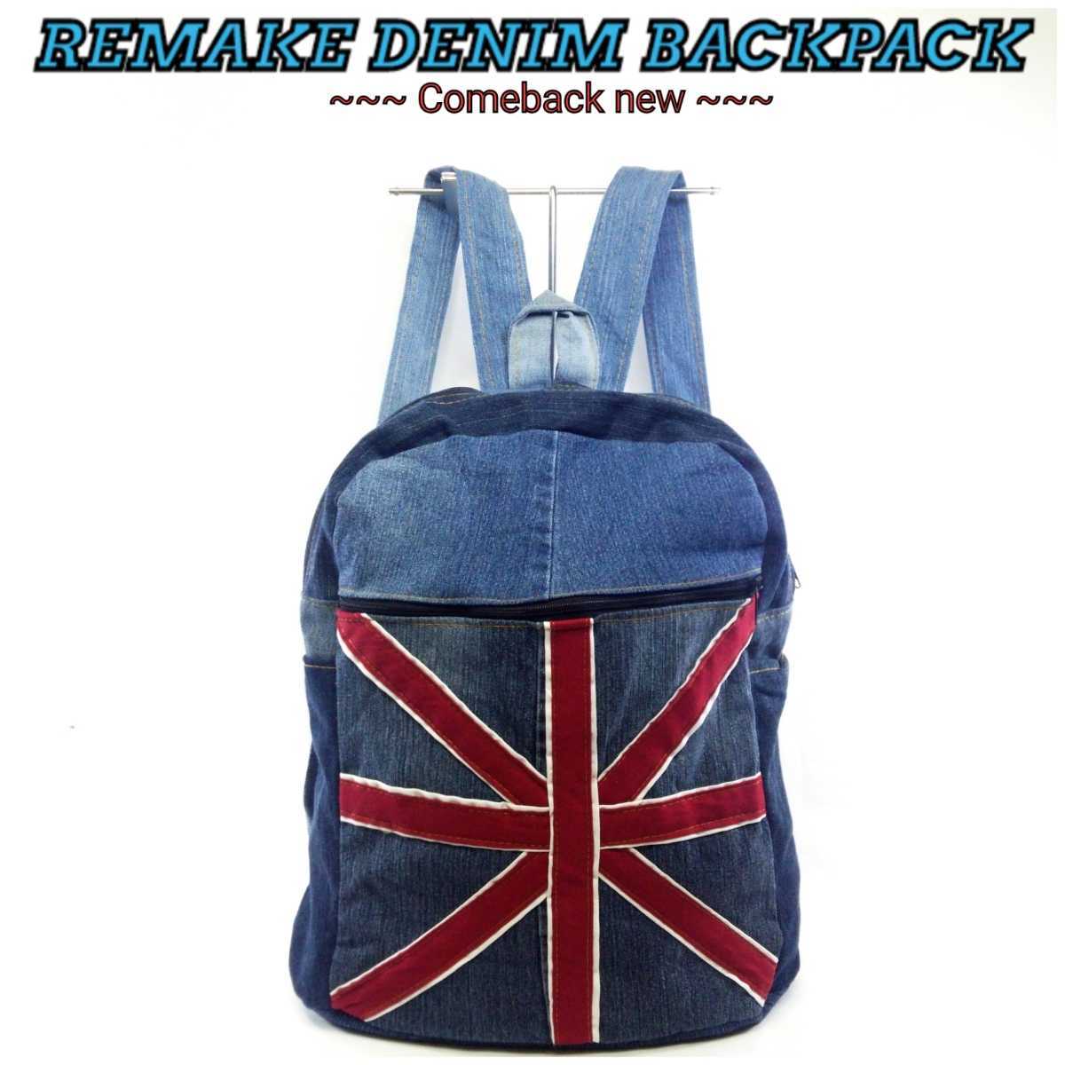 - 新品未使用 リメイクデニム ハンドメイドUK 大容量リュックサック【メール便送料無料中】