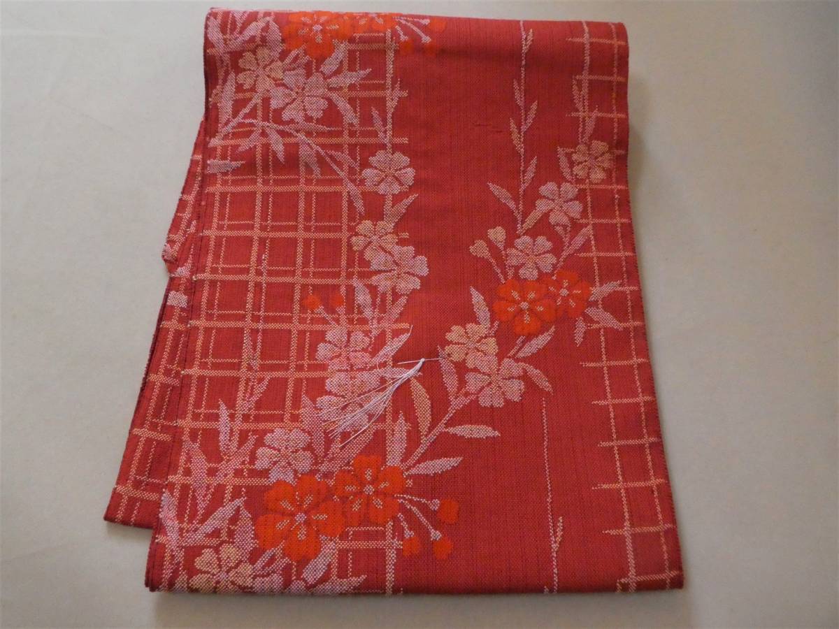 - ⑳和装 帯 名古屋帯 赤 朱色系 花 レトロ