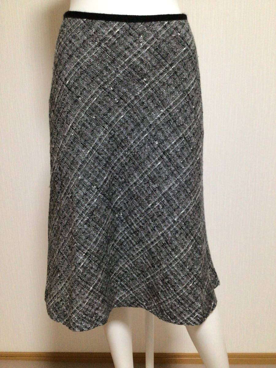 > 6424/BONJOUR デザイン性のあるツイードフレアスカート/ブラック系/ウエスト67cm/97517