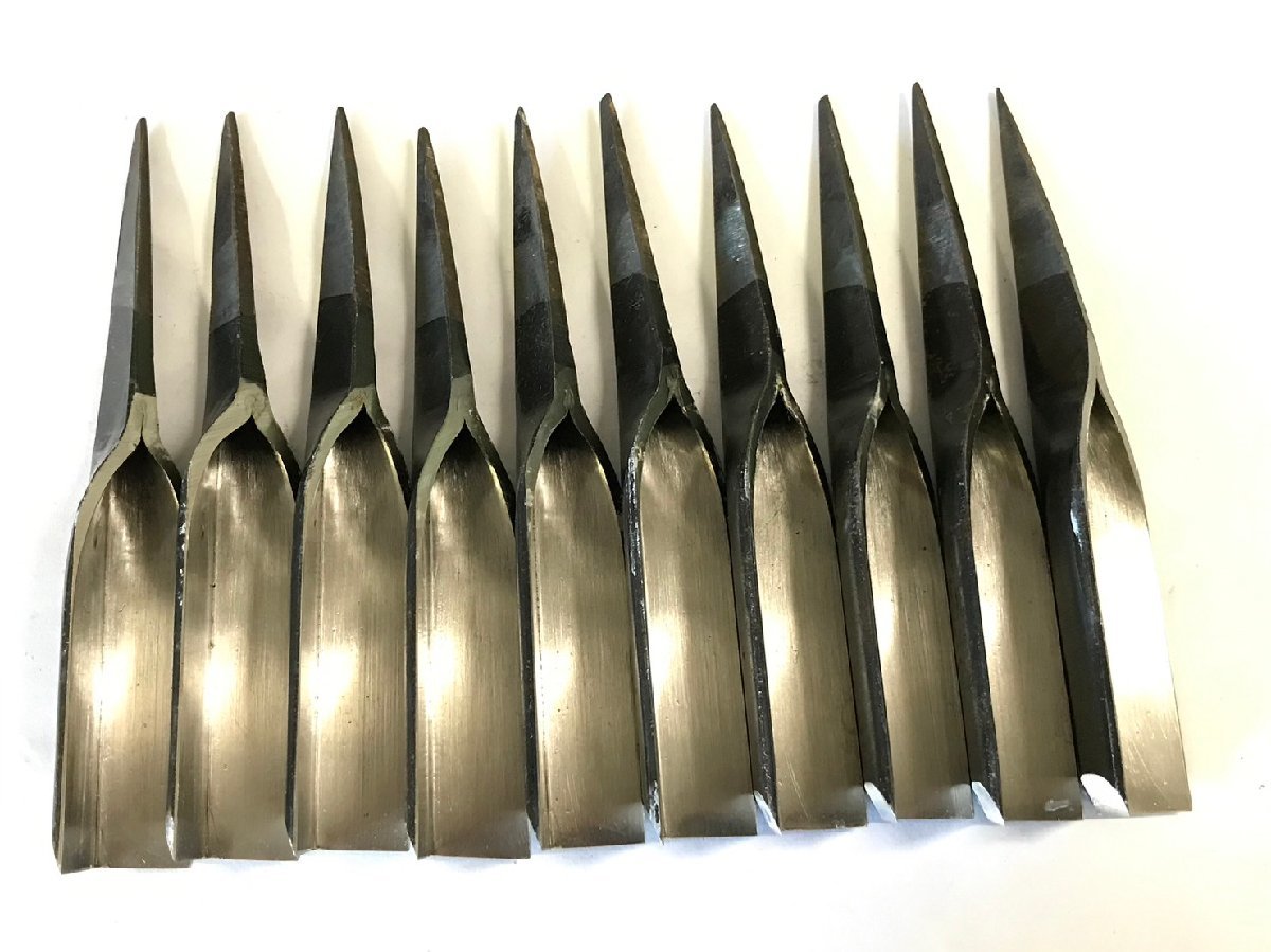 - ■送料無料■ 未使用 長期保管品 仙洞 在銘 三角刀? 彫刻刀 のみ 鑿 刃 10本セット 16mm 全長124~128mm o4/SR19