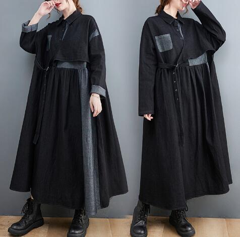 - SALE「同梱1万円送料無料」「フリーサイズ」秋冬新作 カジュアル 上質 デニム 切り替え ゆったり大きいサイズ 長袖 ロングワンピース