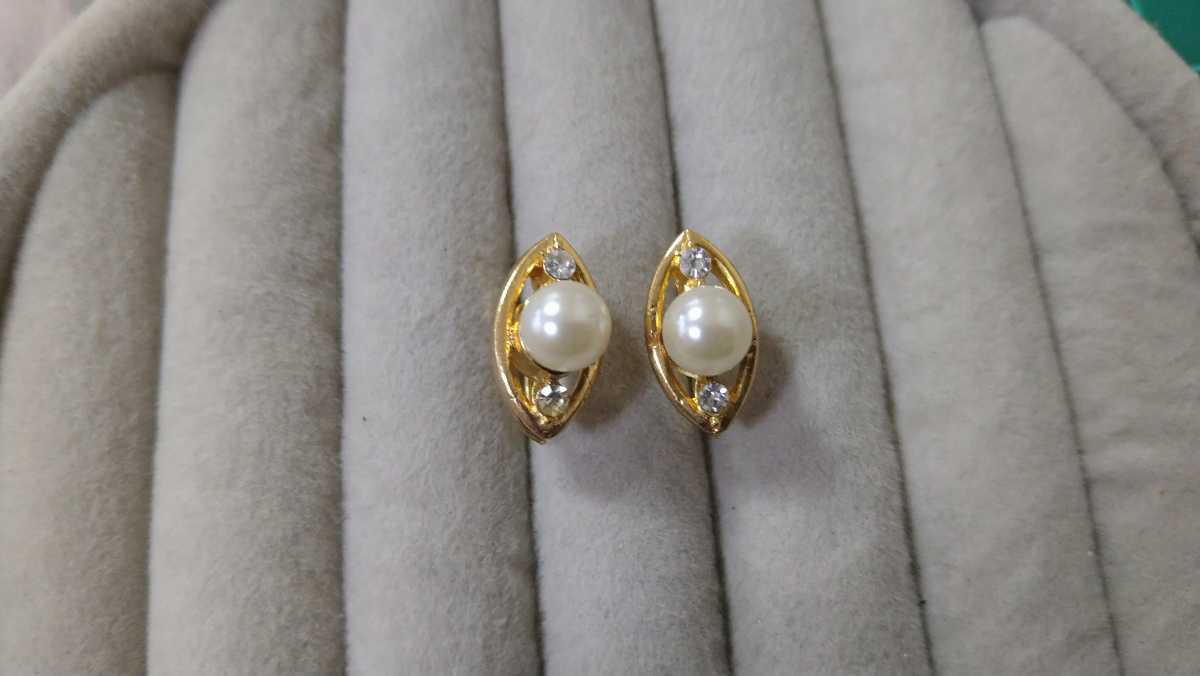 - □1粒パールビジュー×ゴールドカラー×2粒ラインストーンのイヤリング□