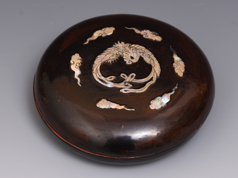 - 時代 唐物 螺鈿入鳳凰香合 青貝 中国美術 茶道具 香道具 木工芸 漆工芸 漆芸 古玩 中国漆器 美品 z1469s