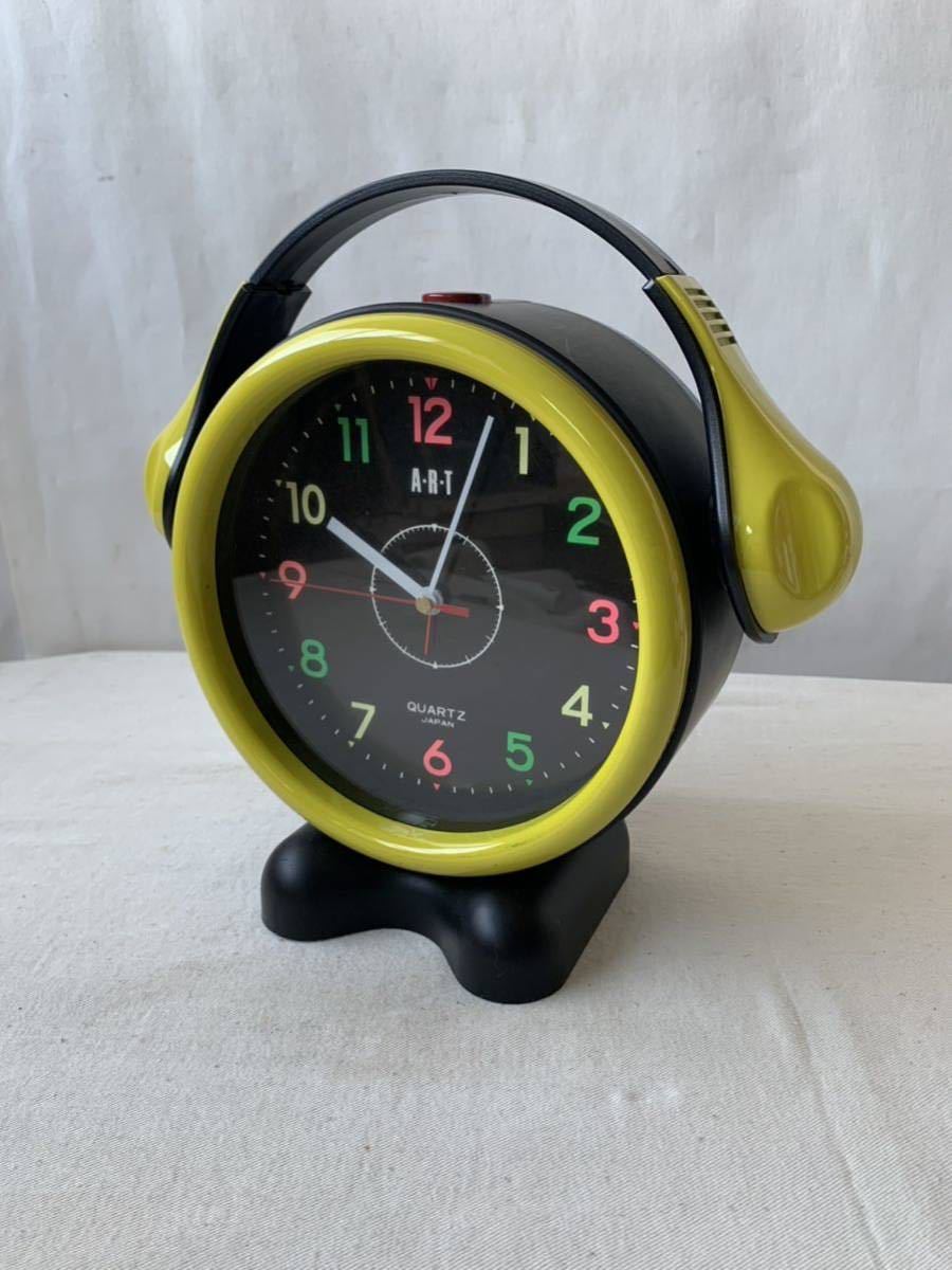 - 可動品 ポップなデザインの目覚まし時計クロック 日本製置時計昭和レトロ古道具アンティークビンテージコレクションインテリアディスプレイ