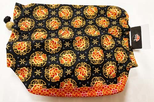 - Batik keris(バティック クリス) ◆巾着ポーチ◆ 黒・オレンジ・金【新品・タグ付き・ロゴ入り袋付き】インドネシア お土産 エスニック