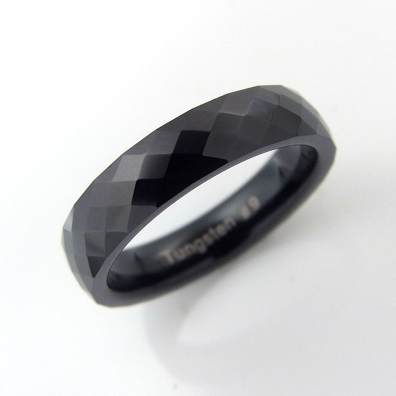 - ★お勧め★人気★手入れ不要★肌に優しい★金属アレルギー&温泉&海水浴ご使用OK★ブラック甲丸タングステンリング★幅4mmダイヤ柄カット