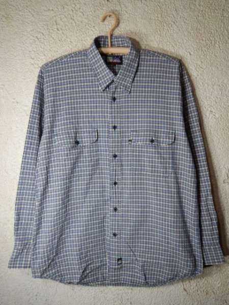 - to6022 FIRST DOWN ファースト ダウン 長袖 チェック シアサッカー風 デザイン シャツ 人気 vintage ビンテージ 送料格安