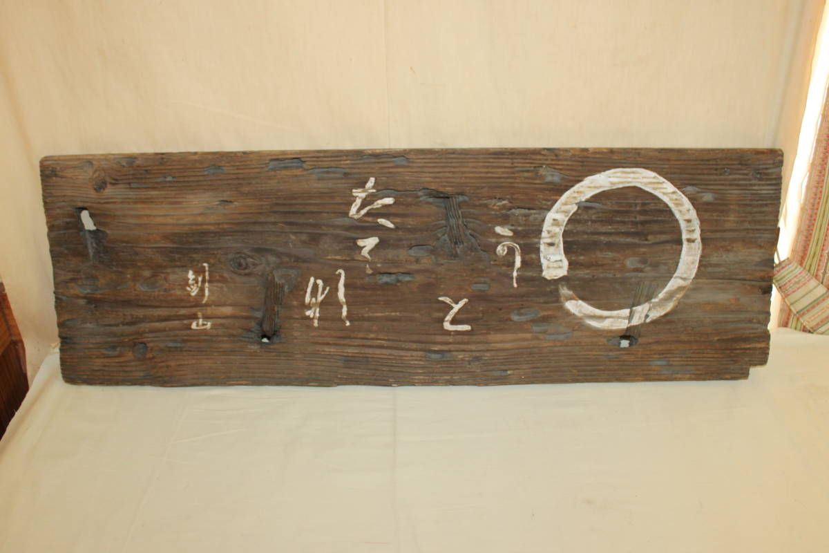 - ■時代物 木製 舟板看板 /茶道具 茶壷 茶室 料亭 茶瓶 茶席 生花 書道 茶釜 鉄瓶 自在鈎 囲炉裏 炉端 火鉢 インテリア