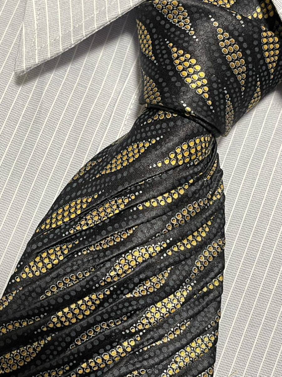 - 美品 ″FABIO CAVGLIA″ ファビオカヴィグリア 小紋 プリーツ仕様 ブランドネクタイ 303220