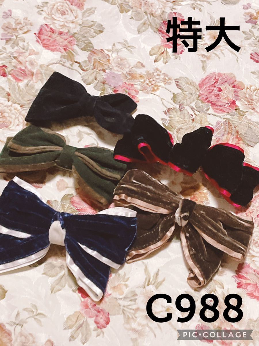- c988 ● バレッタ 5個 ベロア生地 リボン 特大 秋冬 ヘアアクセ
