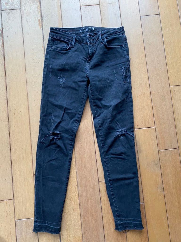 - ZARA スキニーダメージデニム サイズ34 ブラック