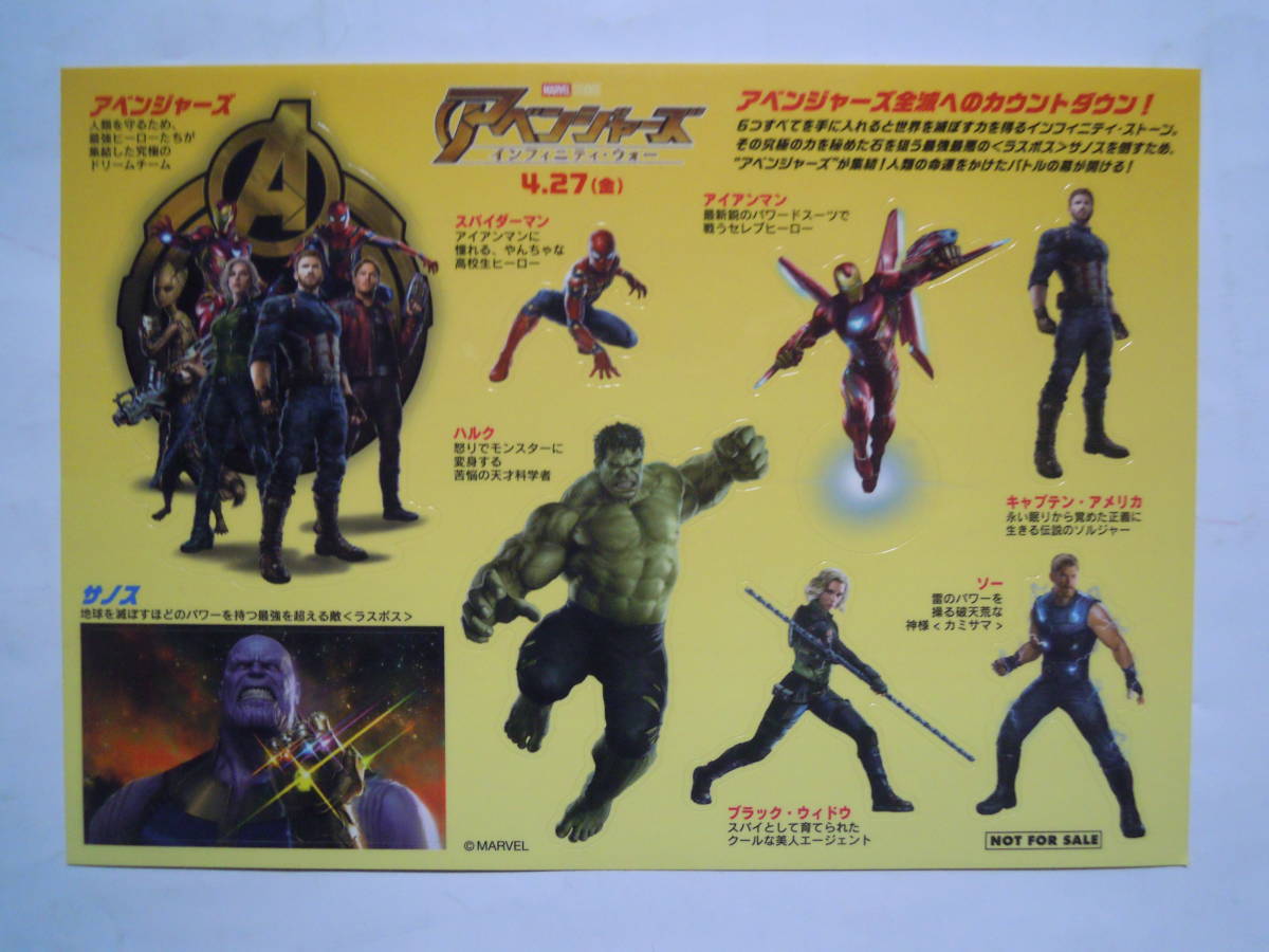 > 映画アベンジャーズ~インフィニティウォー特典ステッカー/アイアンマン,スパイダーマン,ハルク,サノス,キャプテンアメリカMARBEL STUDIOS
