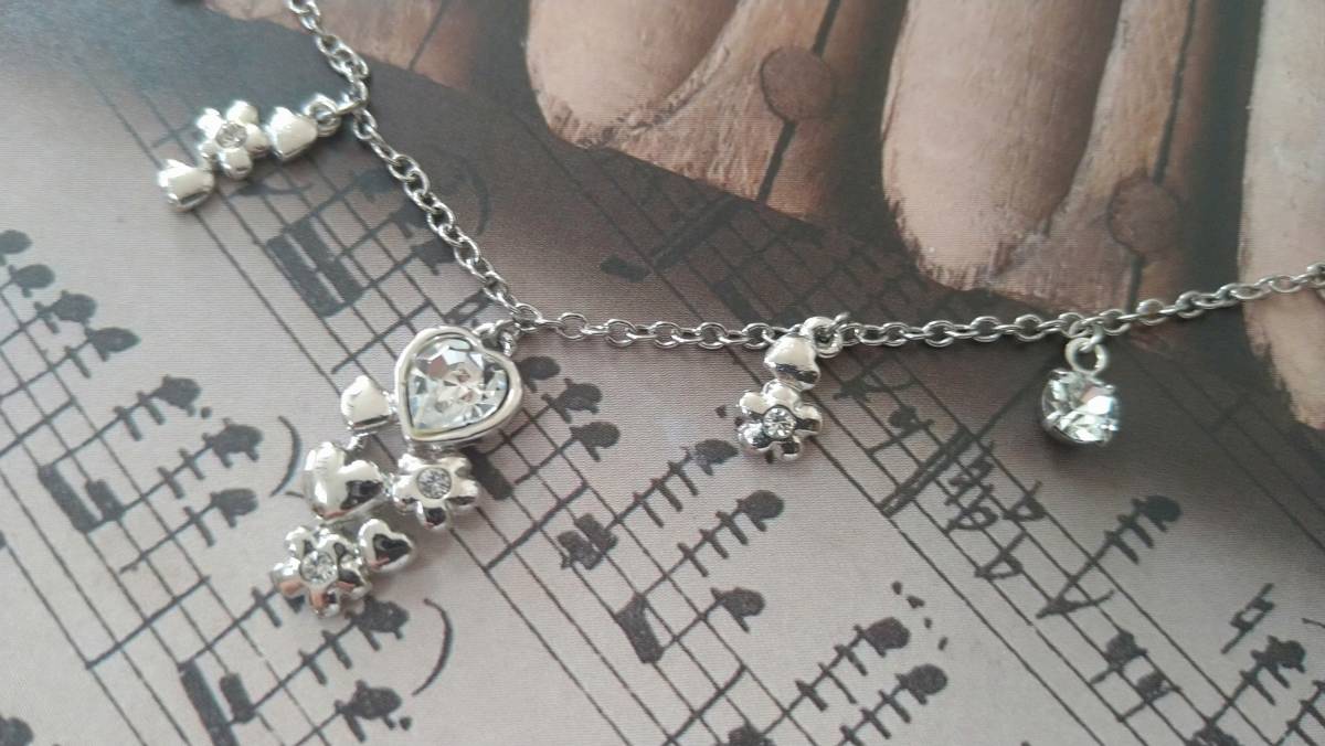 - ラインストーン×シルバーカラー フラワー&ハート ネックレス
