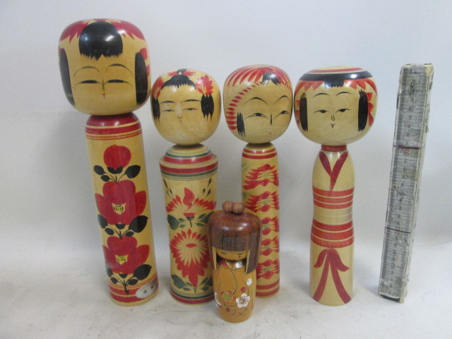- 全国こけしコンクール受賞 加賀沼?+創作こけし 秋田みつお 遠刈田 こけし5体現状細かい傷ヨゴレありよくみて送料は商品説明欄に記入