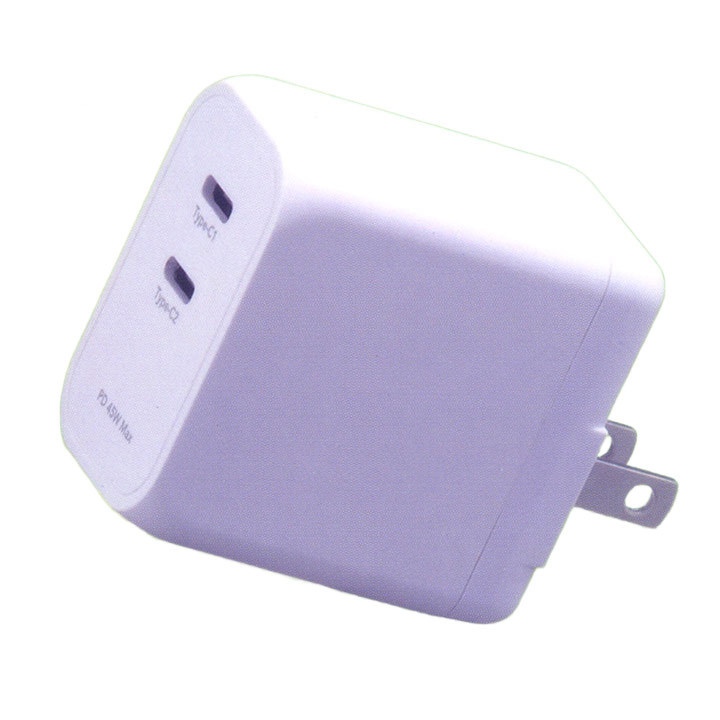 - AC-USBアダプタ AC-USB充電器 2ポート Type-C*2 PD45W ホワイト グリーンハウス/GH-ACU2PF-WH/2636/送料無料メール便 箱開封発送