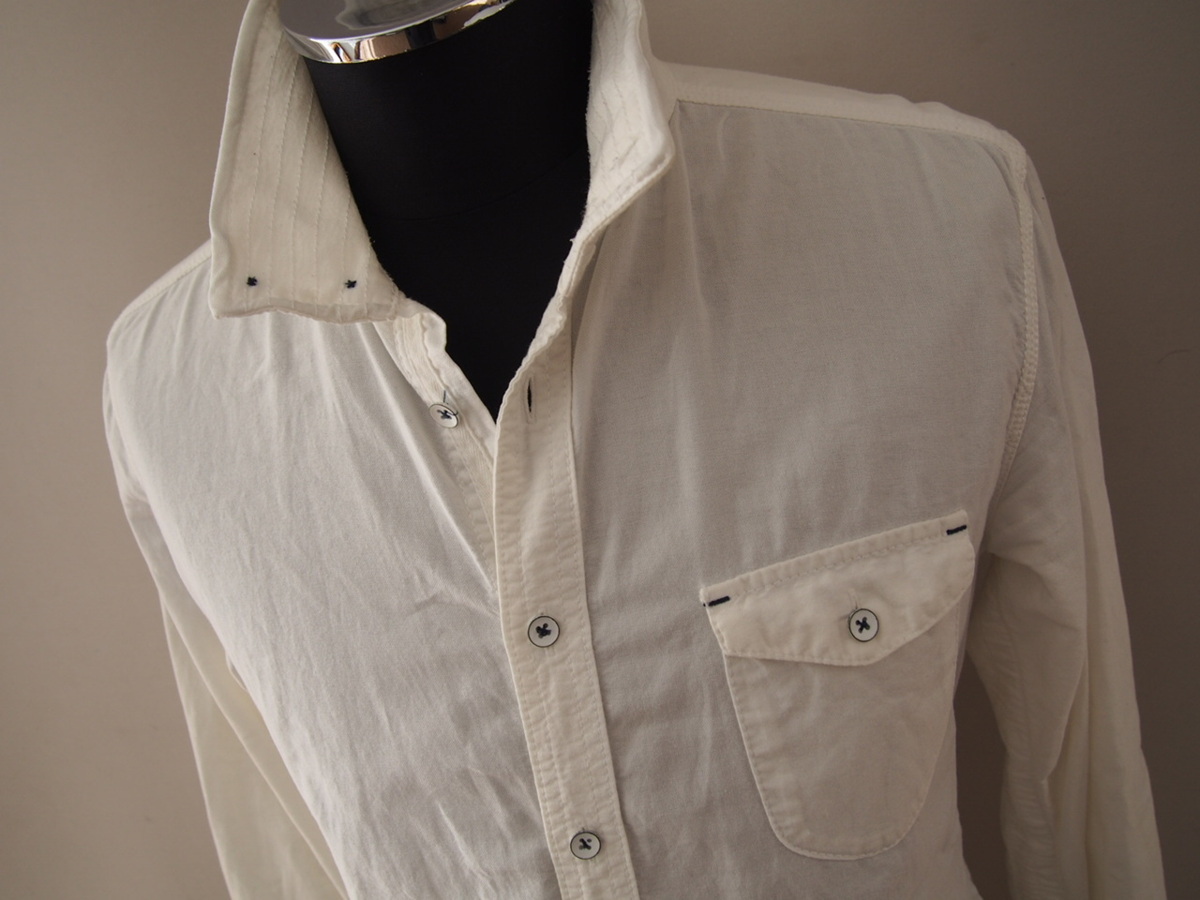 - アバハウス★長袖シャツ★スタンドカラーシャツ★襟端ワイヤー仕込み★ステッチ★フラップポケット★サイズ2★ABAHOUSE