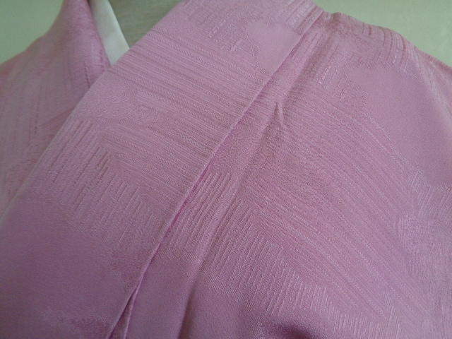 - C503-80 色無地 正絹 広衿 織紋様 着丈145センチ 裄61センチ リメイク素材 市松人形 つまみ細工 布遊び