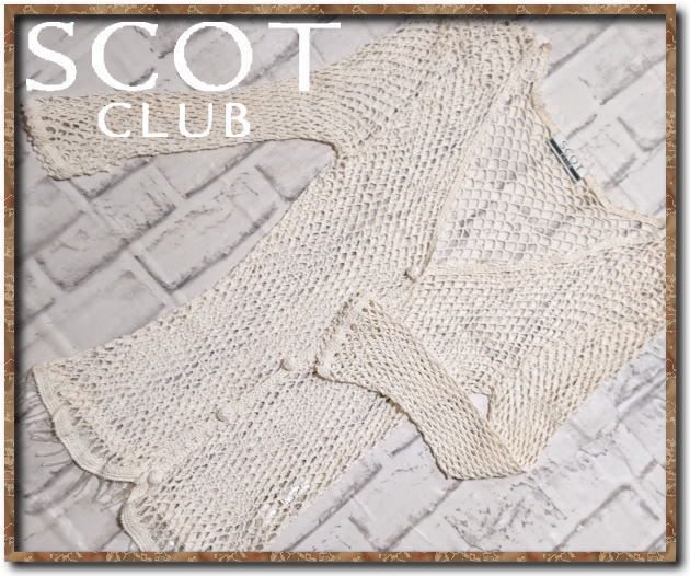 - 美品!!☆SCOT CLUB スコットクラブ 裾ビーズニットカーディガン 白☆やや難