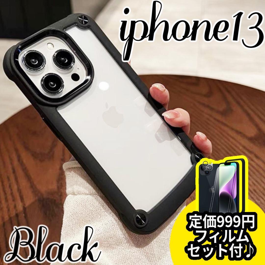 > iPhone14 ケース クリア ブラック 耐衝撃 スマホ本体保護 黒 フィルム