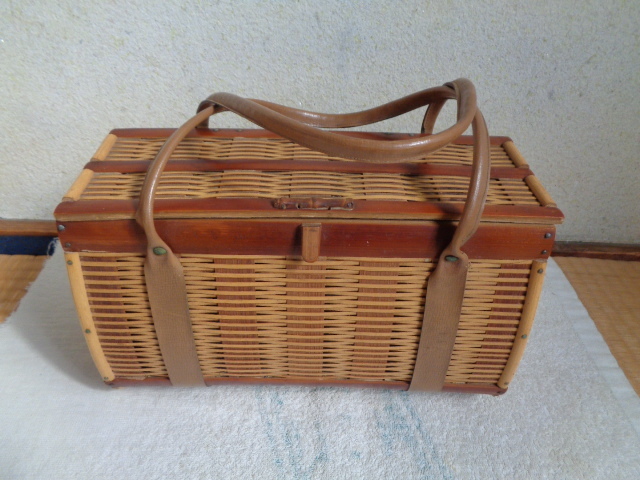 - レトロ 竹細工?-竹・木 ハンドバッグ/バスケット・手提げバッグ/竹製ハンドバッグ・竹編みバッグ/難あり-上蓋留め具なし/