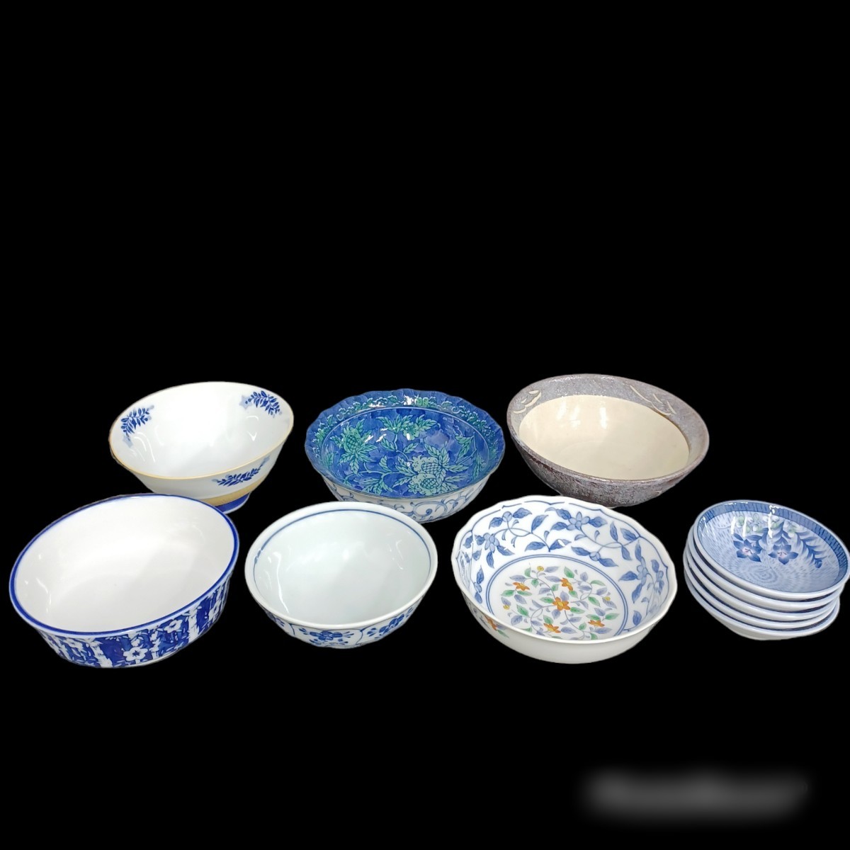 - 石)食器 まとめ売り 11枚 青 丼 小皿 盛皿など 和食 料亭 旅館 割烹 懐石 居酒屋 小料理店 飲食店 230425 E2-5