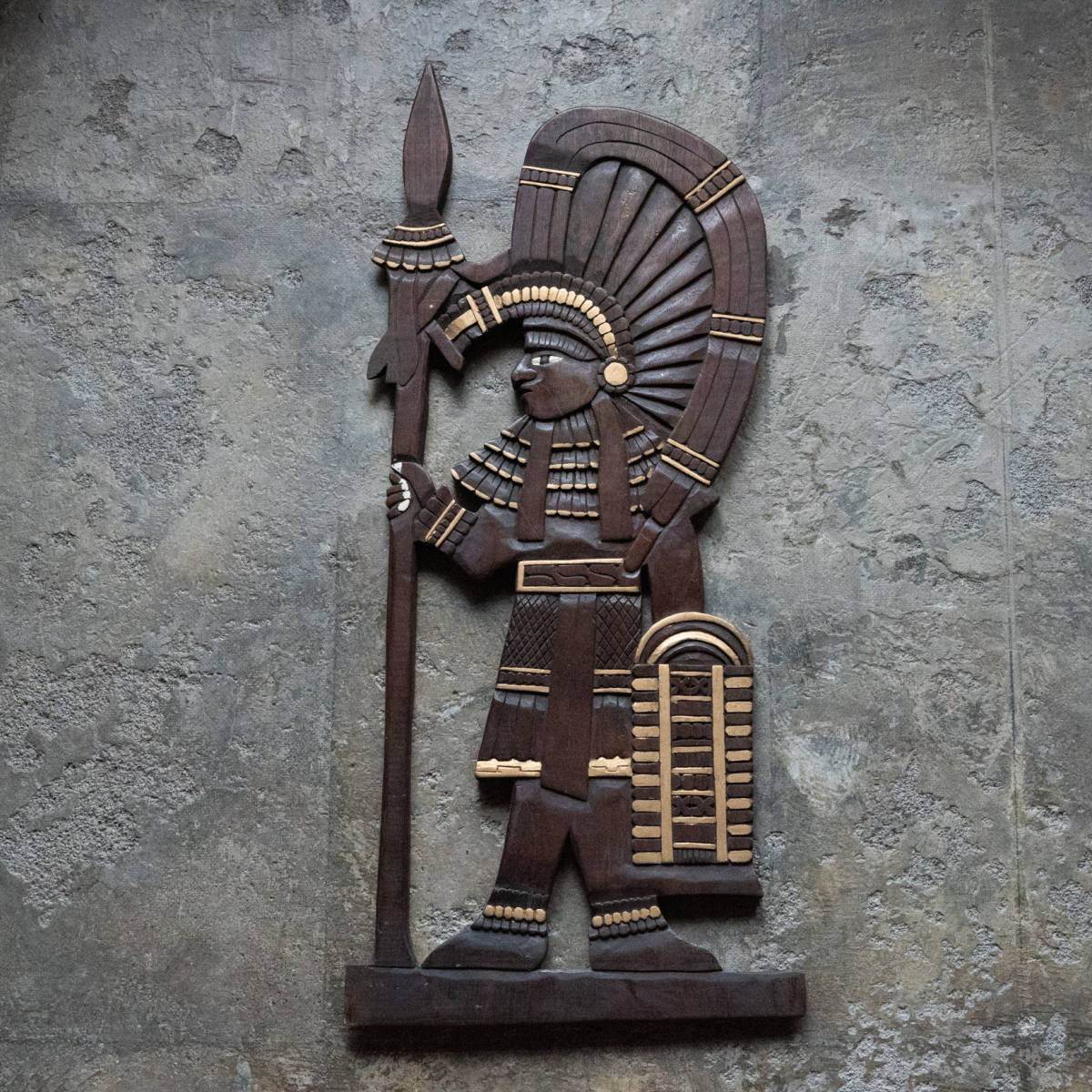 - 槍を持った兵士 男性像 木彫り 木製彫刻 南米? アフリカ? 置物 オブジェ 古道具 民芸 レリーフ