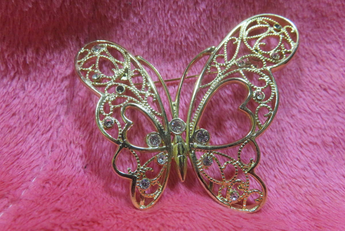 - X8100 ブローチ ちょう ラインストーン 石落ち