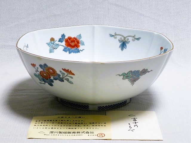 - 深川製磁 深鉢 栞 草花 色絵 菓子鉢