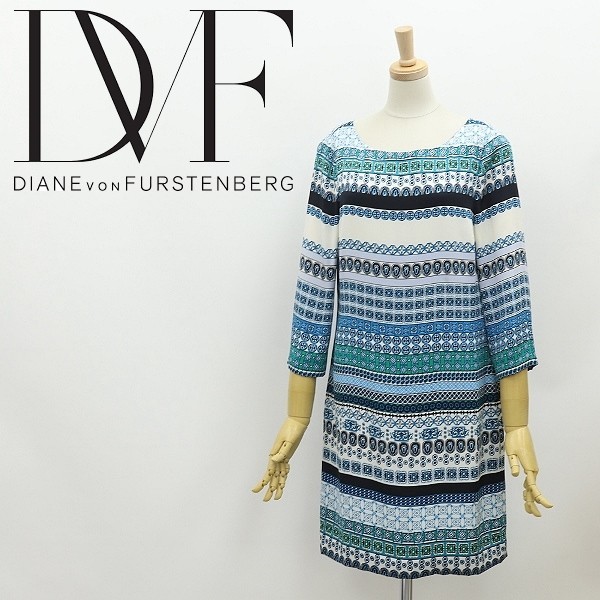 > ◆DIANE von FURSTENBERG ダイアンフォン ファステンバーグ シルク ストレッチ 総柄 バックシャン 七分袖 ワンピース 2