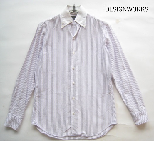 - 高級日本製!!デザインワークス DESIGNWORKS*美シルエット ストライプ柄オックスフォード開襟ボタンダウンシャツ 46 M アバハウス