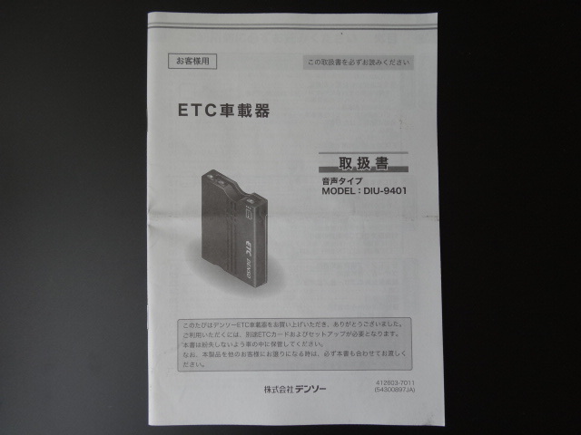 - J-512 ☆ デンソー 取扱書 ☆ DIU-9401 ETC車載器 中古【送料¥210~】