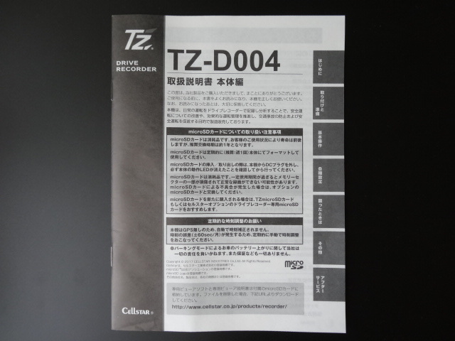 - J-513 ☆ CELLSTAR 取扱説明書 本体編 ☆ TZ-D004 ドライブレコーダー 中古【送料¥210~】
