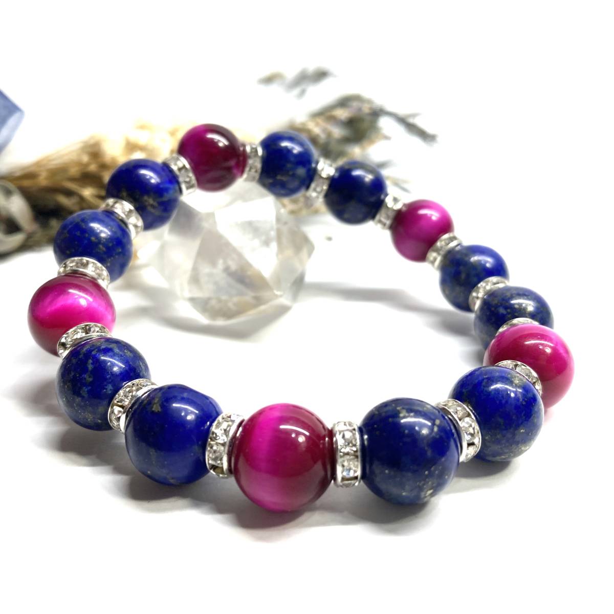 > ラピスラズリ&ピンクタイガーアイ パワーストーン ブレスレット 天然石ブレス (シルバー) 12mm 幸運 開運 メンズ 男性