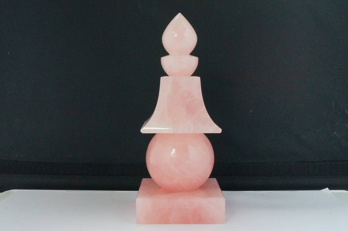 - 特大サイズ【早い者勝ち!即決価格】伝統工芸品 甲州水晶貴石細工ローズクォーツ舎利塔 五輪塔 仏舎利 仏塔 舎利容器