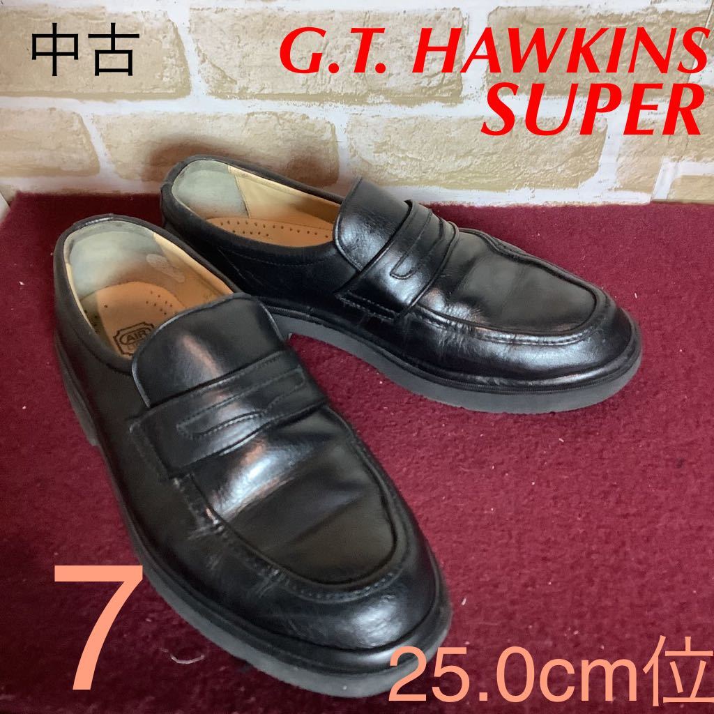 - 【売り切り!送料無料!】A-208 G.T. HAWKINS!コインローファー!ビジネスシューズ!7 25.0cm位!ブラック!黒!ホーキンス!仕事!冠婚葬祭!中古!