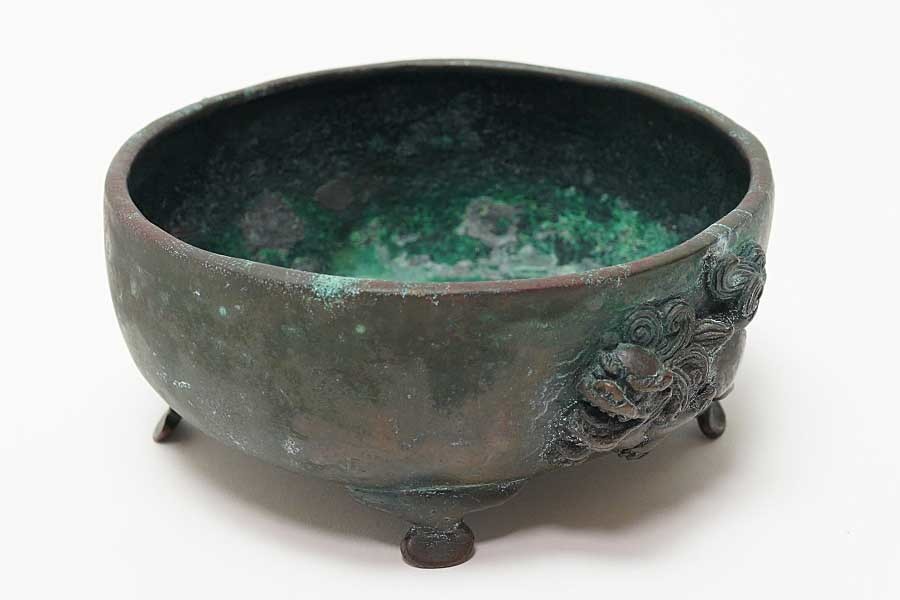 - 中国古玩 時代唐物 古銅獅子鋤出高彫四足香炉 初荷 骨董 古美術品 古道具