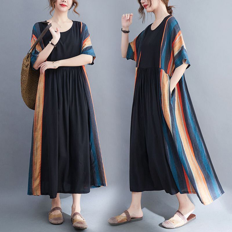 - ロングワンピース レディース 夏 ゆったり 半袖 カジュアル 薄手 通勤 可愛い 大きいサイズ SLWB035(フリー)