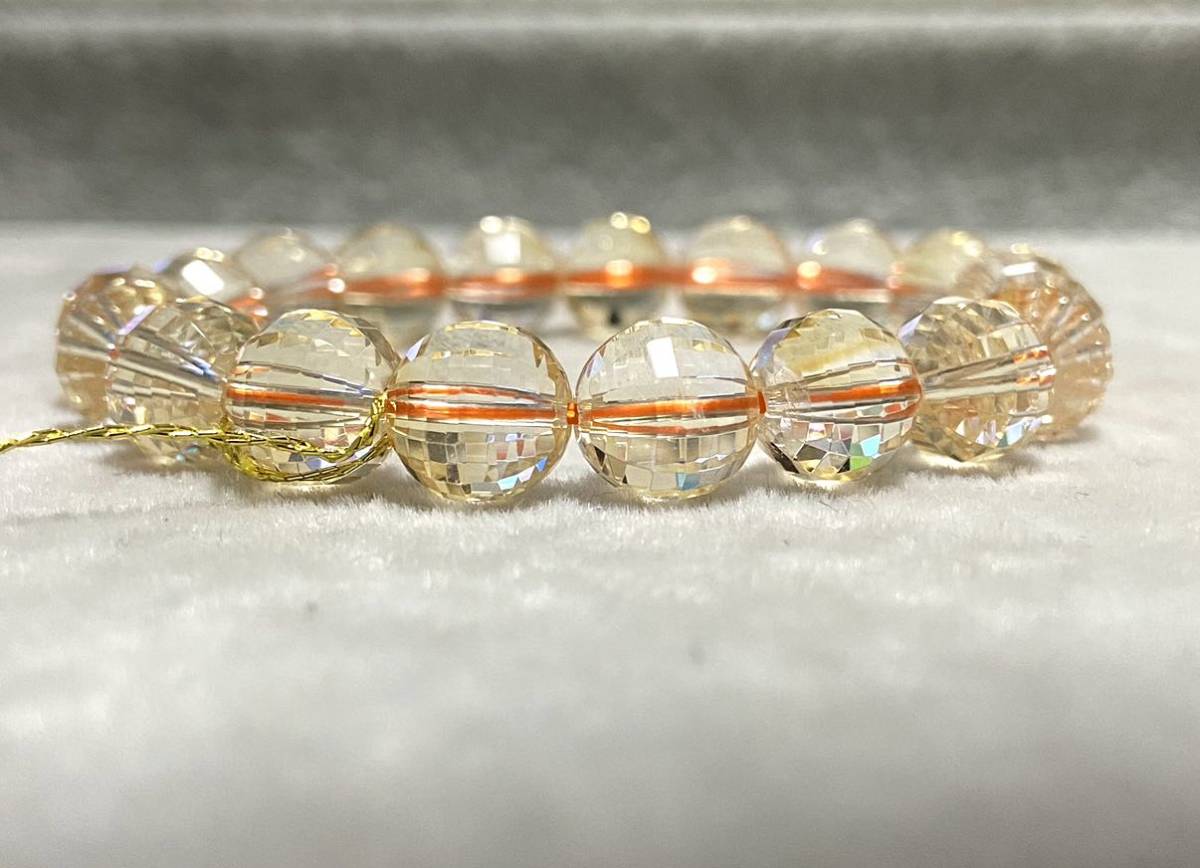 - シトリン 9mm ミラーボールカット レアカット品 一点物 天然石パワーストーンブレスレット 金運